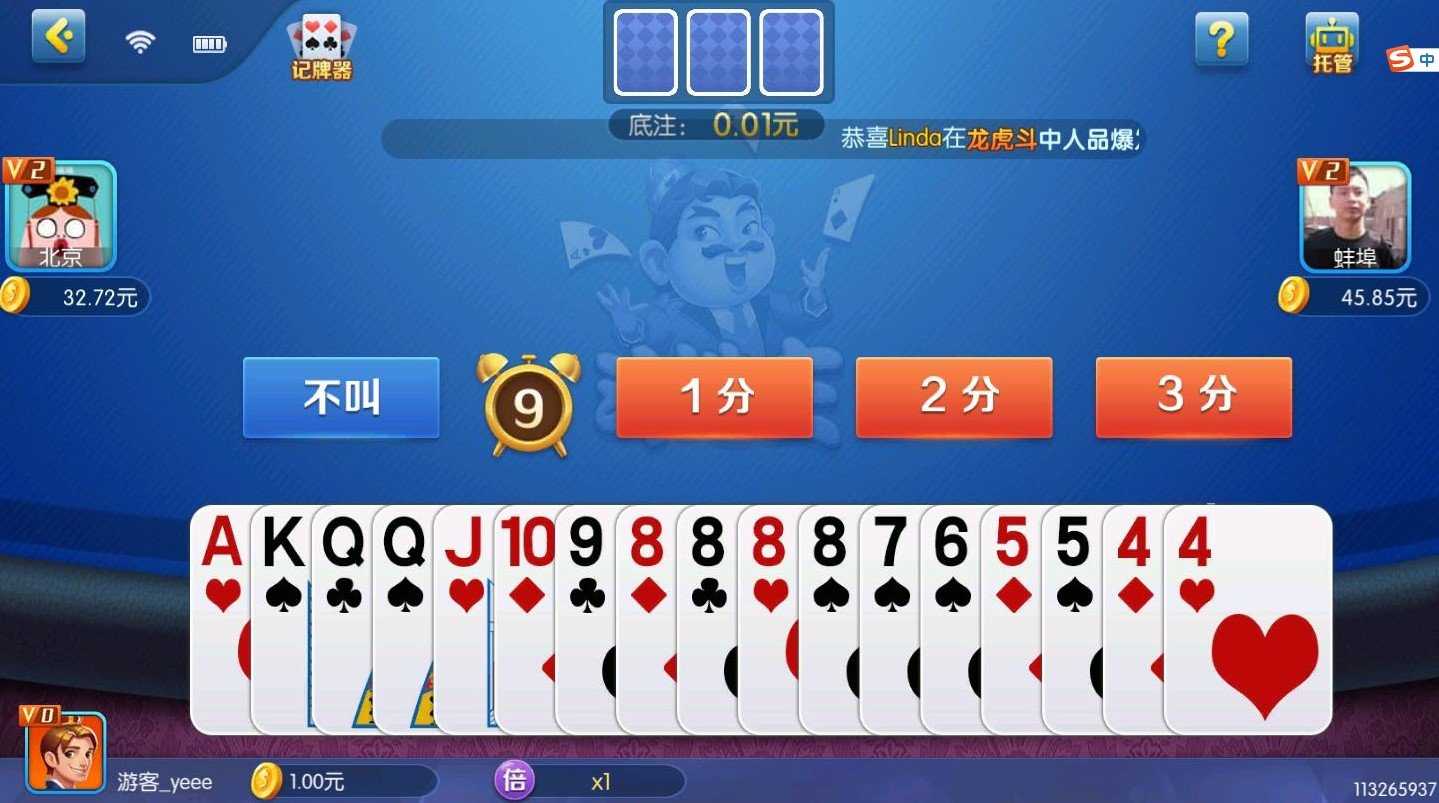4.抢地主:如果有玩家叫地主,其他两位玩家可以选择抢地主。只有在前一个玩家叫地主后才可以抢地主,进行抢地主时,叫分会增加。其他情况下,叫地主顺序不变。