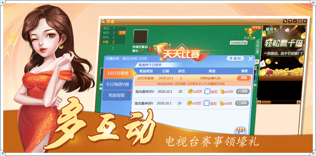 24小时赛事不间断,全新竞技模式,火爆新高度,奖品多样,场场火爆!