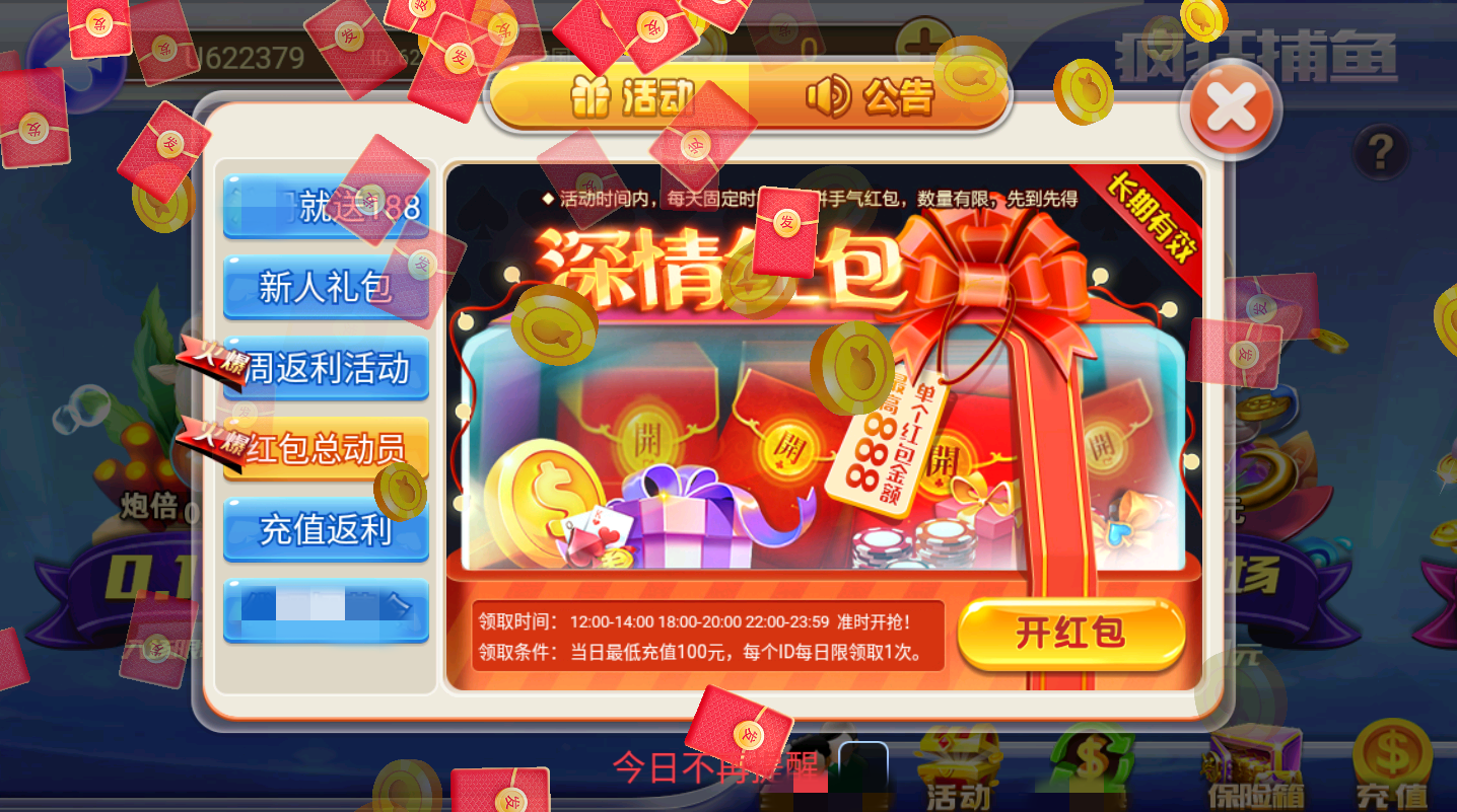 2.多种游戏玩法,包含了斗地主、牛牛、金花、捕鱼等。