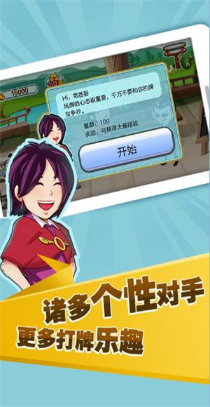 4、随时与其他的玩家欢乐的玩上一把,非常适合打发时间,足不出户也能体验到棋牌的无限乐趣;