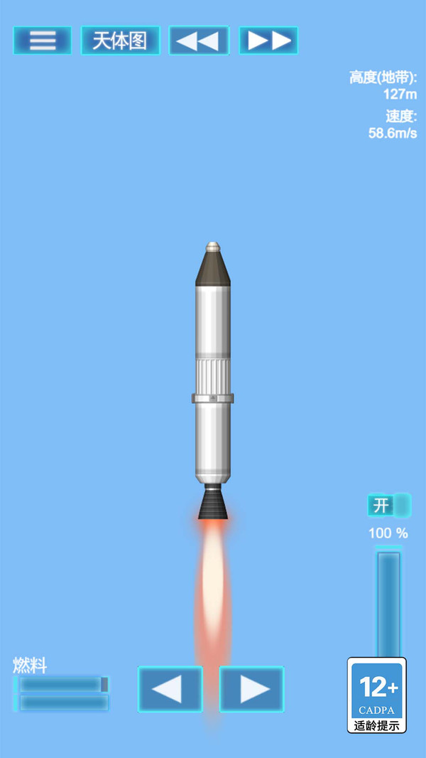 3、发挥你的水平,建造各种型号的火箭,进行发射。
